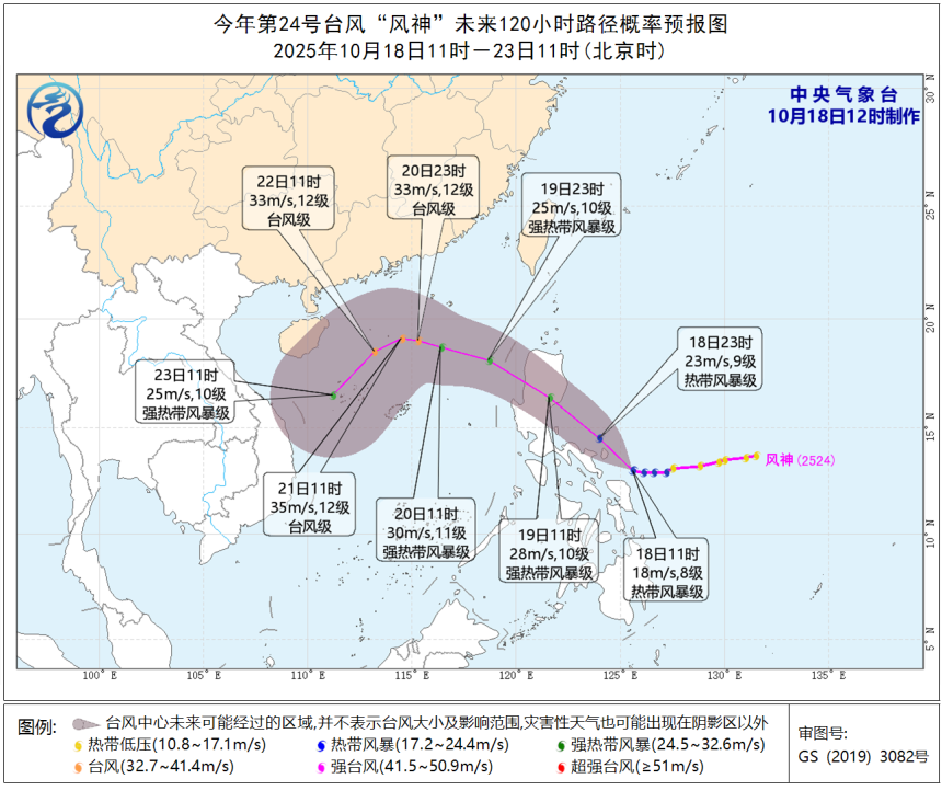 菲律宾以东洋面热带低压已于18日凌晨加强为今年第24号台风“风神”(热带风暴级;英文名称:Fengshen;名字来源:中国;意义:神话中的风之神)。