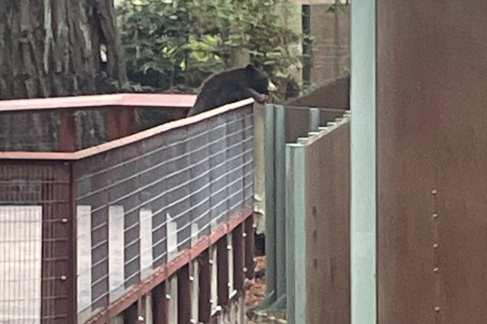 闯入事件的照片显示,这只黑熊蹲坐在观景阳台上,像任何一位普通动物园游客一样,远远地观察着它的同类。幸运的是,这只熊没有试图爬进围栏内,但它确实碰到了动物园给动物们留下的一些玩具。